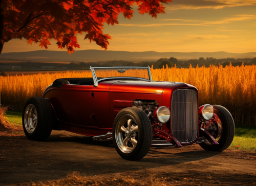 1932 ford mosel A roadster hot rod, in a country scene --ar 11:8