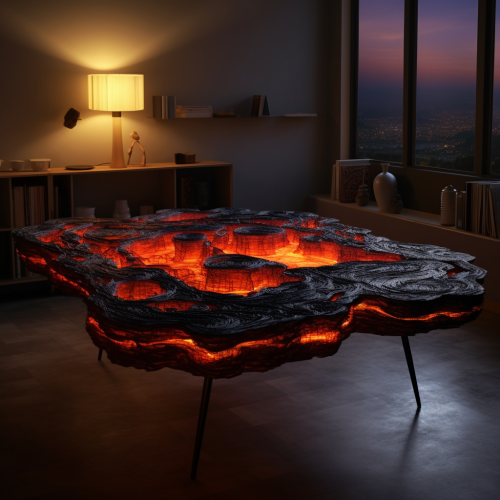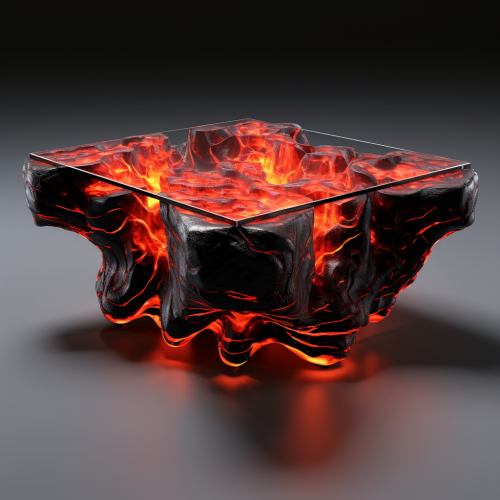 3D lava flow center table, make feet of table like overflowing lava, detailed , high quality --ar 1:1