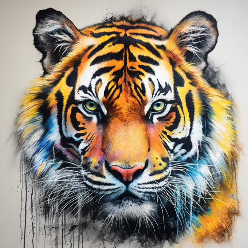 a lizard tied and hanging from a hook, in psychedelic colors, hand painted in expressionist technique