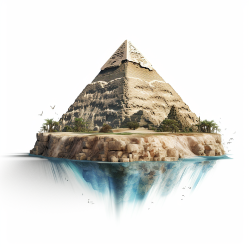 an isolated 3D world rock egypt pyramid scene floating on a white background