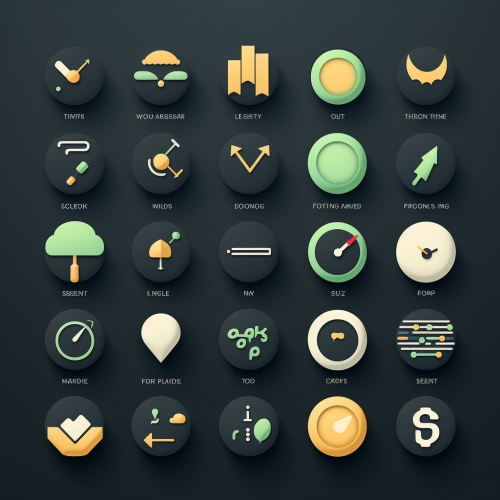 an image showing a bunch of different icons, minimalist features, precisionist style, interactive pieces.