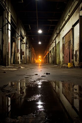 color photo of the interior of an abandoned warehouse at night, with the subject "icon of" , the vast expanse of the abandoned warehouse stretches before you, its empty space waiting to be explored , , the dimly lit interior reveals the worn-out walls and the vastness of the desolate floor beneath your feet , , the absence of any clutter accentuates the simplicity and starkness of the surroundings, amplifying the feeling of solitude , , captured with a digital camera, using a standing perspective angled at 90 degrees to capture the verticality and depth of the space , , directed by Satoshi Kon, cinematography by Mamoru Oshii, photography by Makoto Shinkai, fashion design by Ai Yazawa, --c 10 --ar 2:3