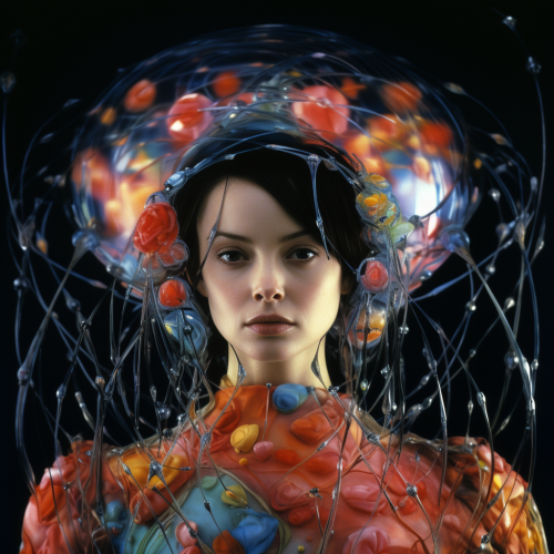 Anime drawing inspired by the 1995 anime Ghost in the Shell. Embrace the essence of surrealism, blending reality with the subconscious. Combine unexpected elements, utilize symbolic imagery, and employ a rich color palette to create a dreamlike atmosphere. Challenge perspectives and invite personal interpretation, 4k:: --ar 16:9