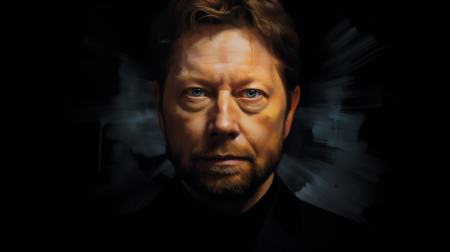 A portrait of Eckhart Tolle, only his head in a pitch black background with nothing in it. --ar 16:9
