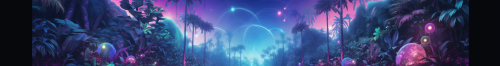 full front view scene of a jungle disco with video walls covered in vines, disco balls, palm trees, jungle aesthetic, visual, purple blue cyan and pink, high detailed 3D scene --ar 39:5