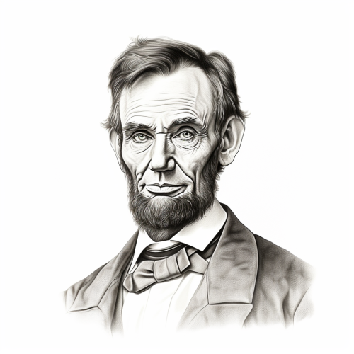 abraham lincoln in style of engraved portraiture or currency engraving, black and white, no background, white background