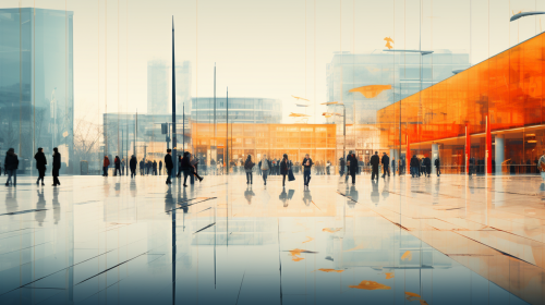 an abstract picture of an empty public city sqare in berlin, painterly bright mood --v 5.2 --aspect 16:9