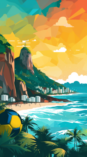 Brazilian beach scene ABSTRACT BACKGROUND WALLPAPER captured in the style of whimsical art, Rio de Janeiro life with beach football vibrant colours and green and blue and yellow --w 20 --chaos 11 --ar 9:16 --stylize 250 --style raw --v 5.2