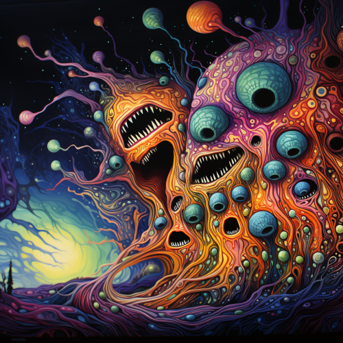Craft an abstract representation of a chessboard where each piece is a different asset class, and the chessboard itself morphs into a dynamic line graph. Add a cosmic background to signify the unpredictability and vastness of the economic landscape.