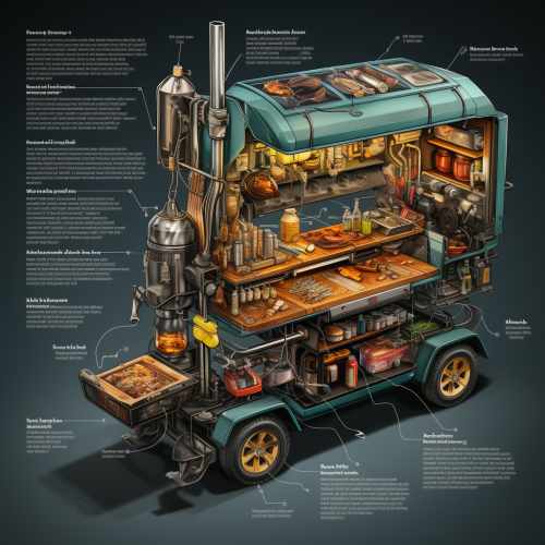 a technical drawing of a mini one man concession food truck mobile gas grill kitchen --s 750