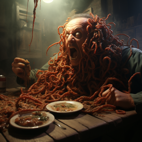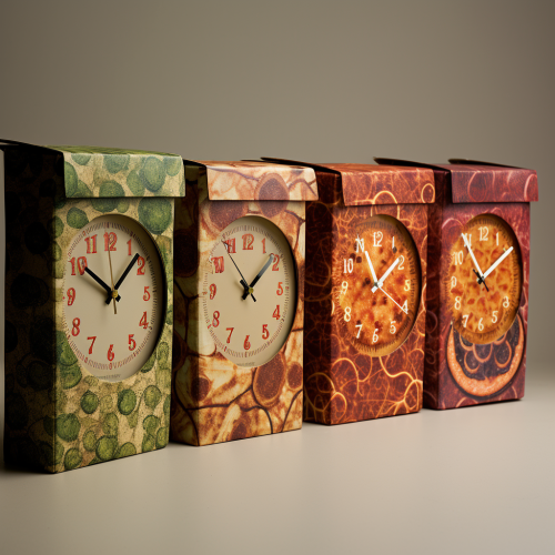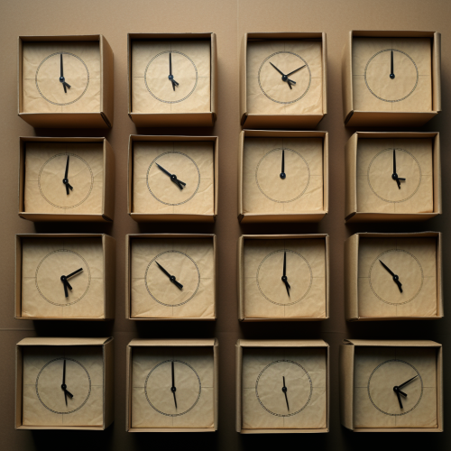 Show a series of progressively pizza boxes, each depicting an hour on a clock. The box for the late hours (like 2 am, 3 am) is prominently open, but it's empty or has wide-open eyes inside.