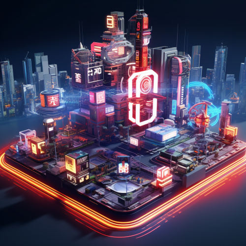 Cubic style. An imaginary virtual city. Kowloon style. Geometric. Cyber. Virtual. Game. Neon. no car, no human, Niji version5
