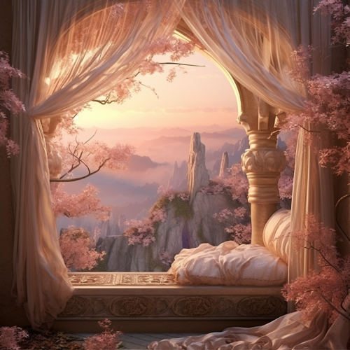 *Out-of-window scenery accentuated by the soft colors of dawn, based on fantasy, added machine decoration**