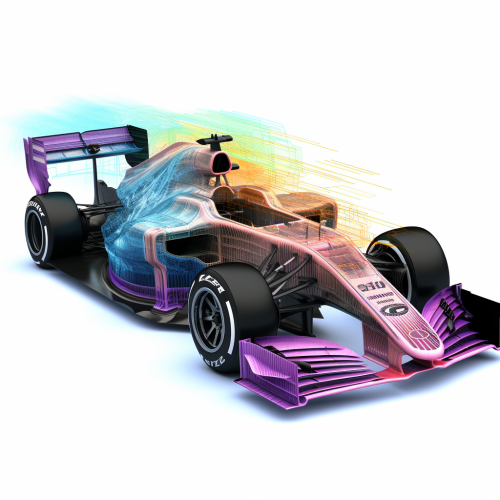 airflow analysis of a Williams FW42 Formula One racing car when travelling at high speed on a white background, you can see how the air flow moves around the racing car, color of the racing car is greyscale, color of air flow is green the same color as an olive.