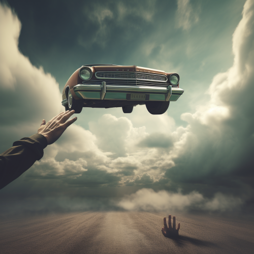 polaroid of a dusty ferrari and private jet inside of an abandoned airplane hanger