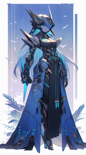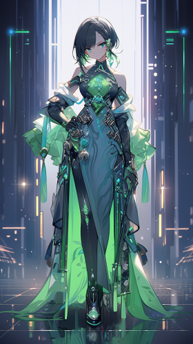 [[4805198520821747713]] full body,front view,full body,front view,A futuristic young robot qipao girl,blue golden green glass ,mecha armed, ,Cyberpunk,pose_transition, Chinese qipao clothes with high-tech, background by neon lights adorning holographic billboards in the city, Future Machinery, visually inventivesci-fi inspired futurism, Ghost in the Shell style --niji 5 --ar 9:16 --iw 1.2 --s 750