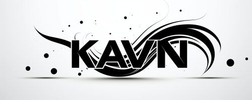 Black and White illuminated word spelled "Kavan", vector, white background, simple, --v 5.2 --ar 10:4
