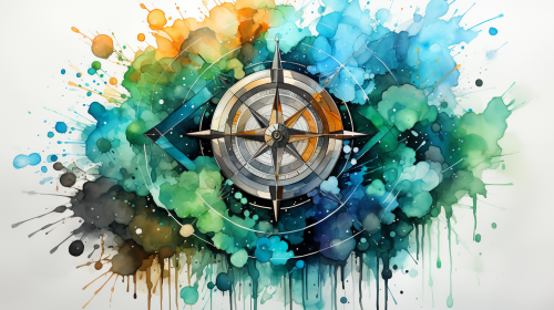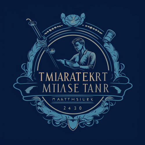 a logo. the logo is a blue print and has the words "Master the Market" as the title --ar 1:1
