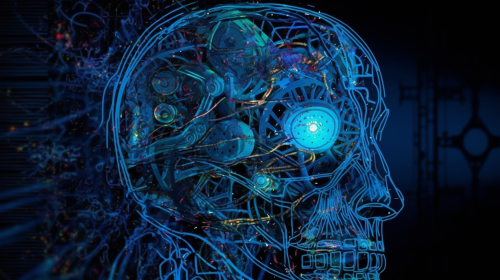 artificial intelligence, blue neon, alcohol ink, --ar 16:9 --v 5.0