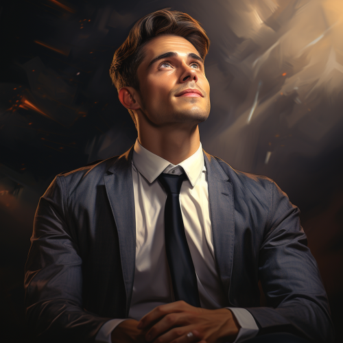 Hyper-realistic. Ultra detailed. Business person thinking about aspiring for better life. --style raw --ar 1:1 --v 5.2 --s 250