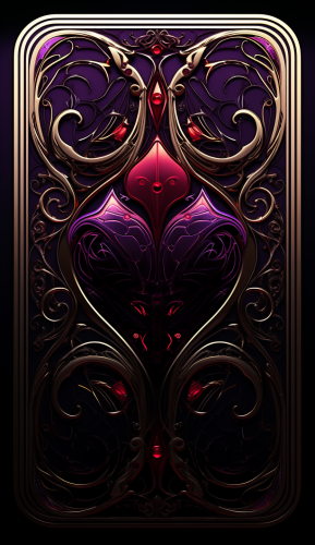 card deck back, fate, red and purple, crisp lines on white background --ar 11:19