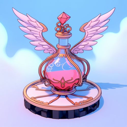2D illustration, disney style design, brightly lit, a magic flying potion with wings sitting on a table, cool, 8k --no people, humans, animals, grainy, blurry, confetti, random chunks, clutter --niji 5