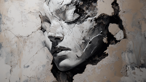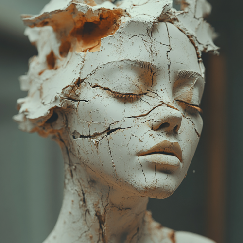 close up of a contemporary figurative sculpture of a punk woman mixed with abstraction and glitched textures , corrosion figures, 3d render, 8k, octane render