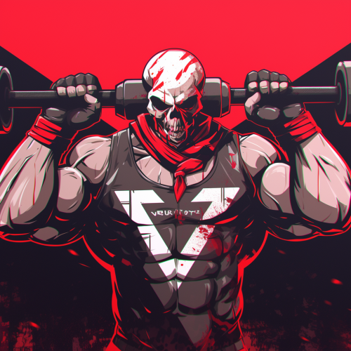 a logo for a bodybuilding coaching brand, not too modern or resebling autoparts, edgy and grundgy, easily read if it has words, not too bubbly, no flexing logo or anything cheesy like posing, camp mentality, high defenition, black red and white elements --v 6.1