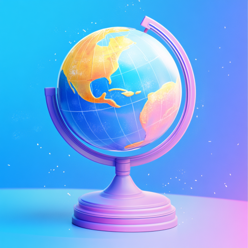 A vibrant and eye-catching cover image featuring a bright blue gradient background. On the left, a cartoon-style globe or magnifying glass icon representing knowledge exploration.