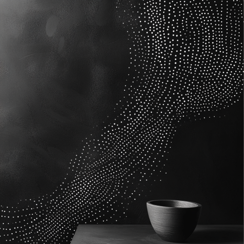 A sleek and masculine aesthetic while incorporating Aboriginal-inspired artistry: Partial Dot Pattern with a transparent or matte white dot pattern on the matte black base. To be used as an accent for a product label