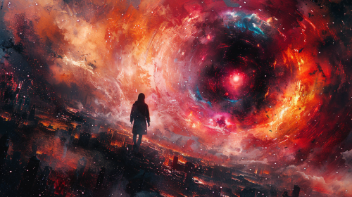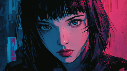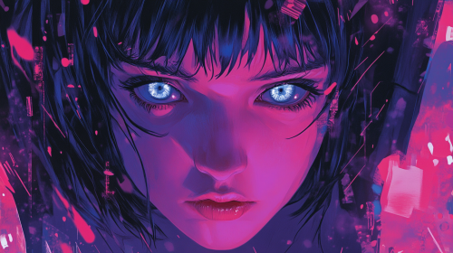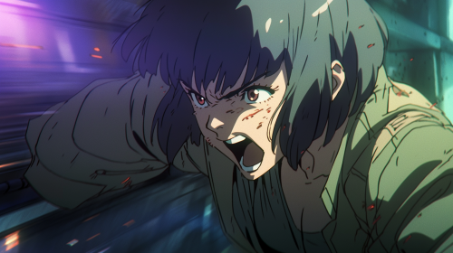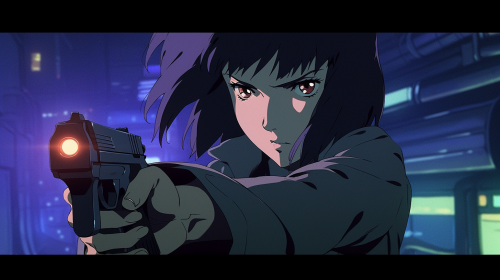 Anime drawing, inspired by the 1995 anime Ghost in the Shell. Embrace the essence of surrealism, blending reality with the subconscious. Combine unexpected elements, utilize symbolic imagery, and employ a rich color palette to create a dreamlike atmosphere. Challenge perspectives and invite personal interpretation, 4k:: --ar 16:9