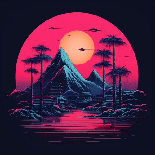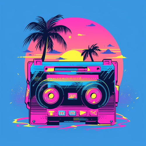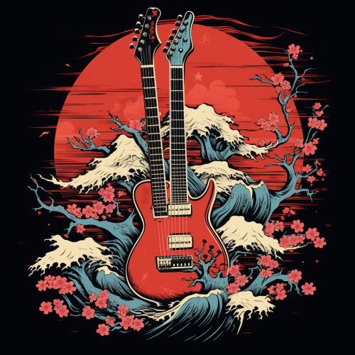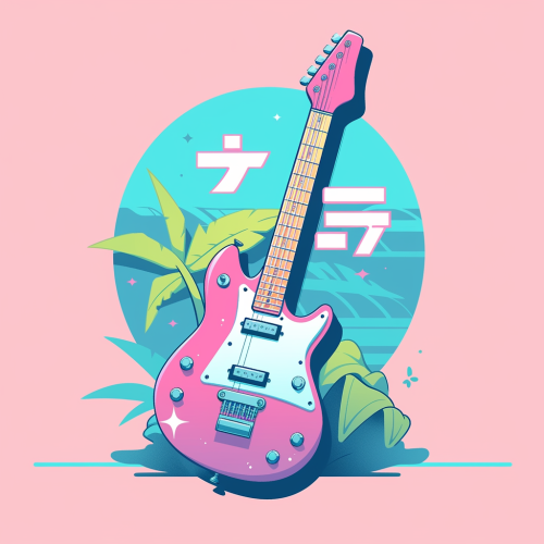 graphic tshirt design, 90s japanese guitar, solid background --niji 5