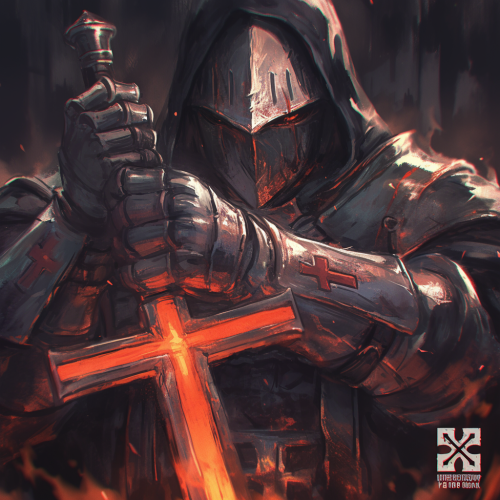 Noblebright mystic medieval ominous depraved crusader yielding a massive knife, close-up view, anime style, fantasy, digital art, masterpiece painting, ultra detailed, ultra high definition, 8K resolution, 3D shading, superior quality, cover illustration, complex design, luminous highlights, rich colours, hyperrealistic, meticulously hyper detailed, high contrast, artstation --niji 6 --s 1000