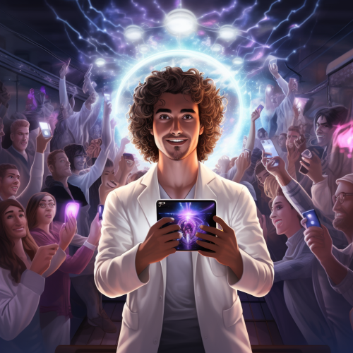 "Draw an image in a digital tablet cartoon like a anime charactere design style of an Arab surgeon in a white lab coat with medium-length curly hair, dressed in work attire, inside a nightclub with neon lights and people dancing all around him."