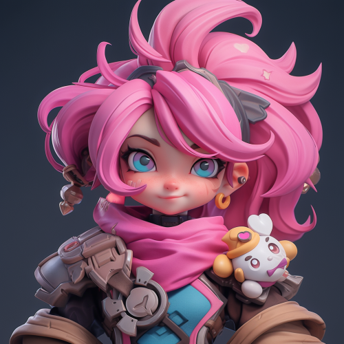 A chibi - She has supernatural, telekinetic powers, style anime girl. She have pink hair. She is serious and old from overwatch My Hero Academia style, It has a sacred look, full bosy view --niji 5 --style expressive --s 250