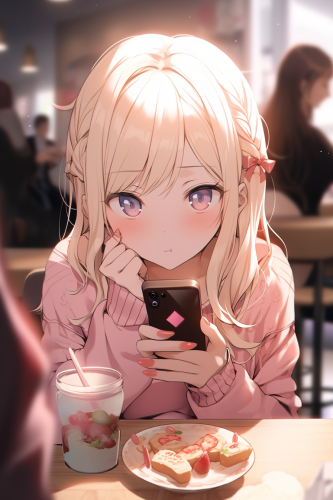 girl playing on her phone, anime, masterpiece, ultimate details --ar 2:3 --niji 5