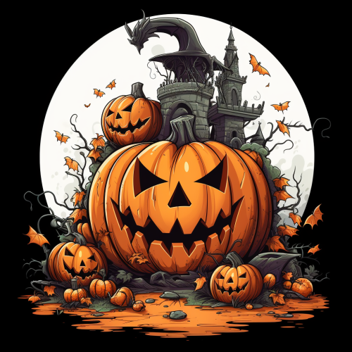 Halloween pumpkin in front of a gravestone, bats in the background, white background, Ultra Detailed, Traces Like From new school Tattoos, , Aggressive dynamic Thick Strokes, 2 Dimensions, Drawing, Digital Painting, anime style, new school tattoo style, cute by kelly doty