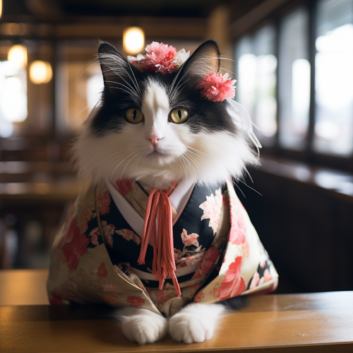 a japanese sushi cheff as a bobtail japanese cat, wearing a japanese headband --v 5.2 --s 250