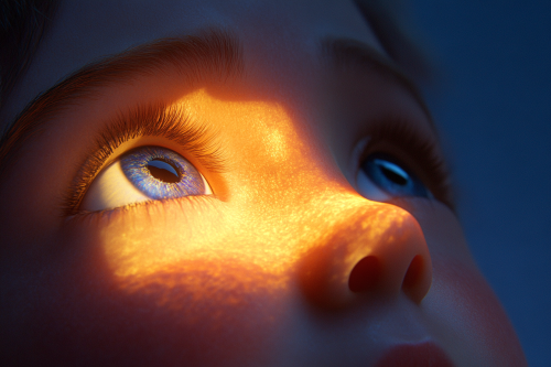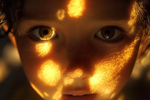 3d CGI animated image of a child's face, glowing with golden light, the light shining so brightly that the the darkenss and shadows around them begin to retreat, very detailed, bright colors, childrens book image, cinematic lighting, --ar 3:2