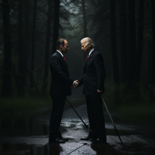 President Biden playing golf with Putin in the style of david fincher. Filmstock 35mm. Dark and moody. --s 250 --v 5.2