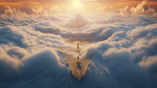 A flying carpet ride over a sea of clouds, photo-realistic, cinematic 8K --ar 16:9