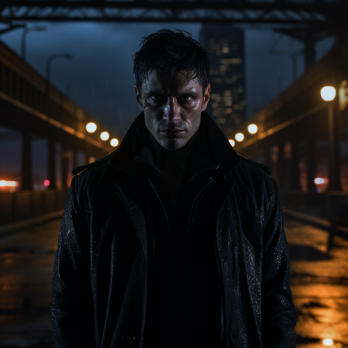 A 3x4 man human in Chicago, goth and vampiric style, vampire the masquerade, very dark, very few lights, 8k resolution, ultradetailed, photorealistic, cinematic lights, drone view from afar