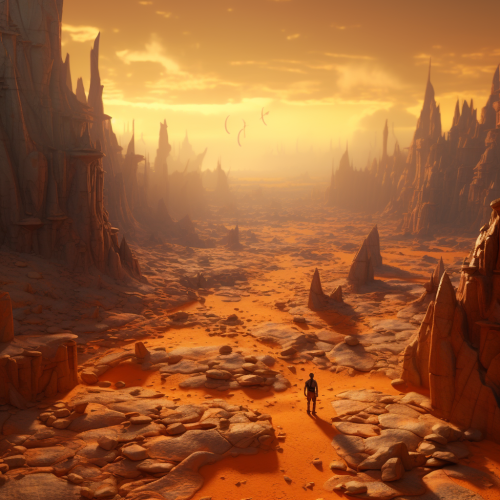 Twenty-six thousand miles east of Rakshasa's reign Crossed seven chasms, a burnt sea, and a yellow muddy plain; hyper-realistic,8k,ultrahd,pixar style,disney style, cinema 4d,--ar 3:2