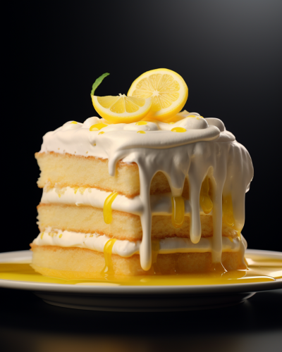 lemon cake, surrealism, plain background, sharp focus, cinematic lighting, product shot, unreal engine, octane render --ar 4:5