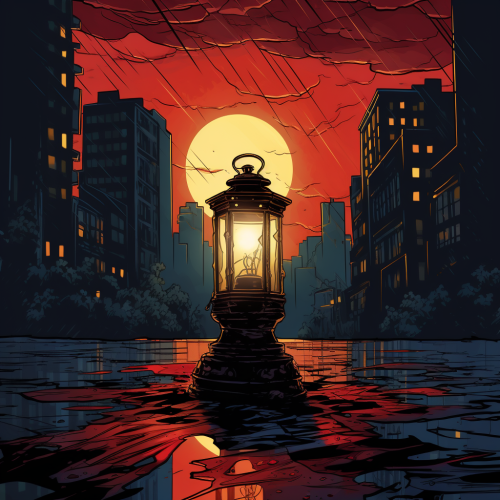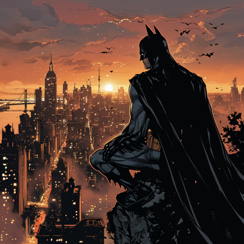 Batman overlooking gotham exhaling dc comic style --v 6.0