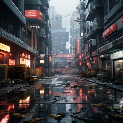 cyberpunk city scenario environment only dry weather, daylight, camera on ground