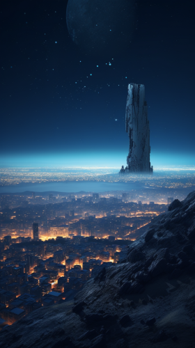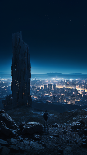 empty tall cliff with cyberpunk city far in the background night time clear skies no clouds totally clear sky night time empty 8K cinematic look arri Alexa --ar 9:16