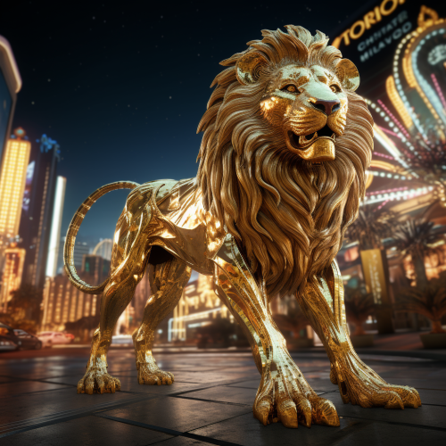 Hyper Realistic Golden Lion walking down the streets of Las Vegas at night, 8K Resolution