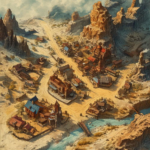 a map of Goldencross a very big wild west city with and some ranch around and a canyon --s 250 --v 6.0