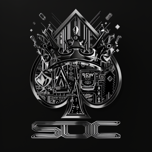 A logo concept for SDC, where a large spade symbol encloses a collage of crowns and playing cards. Abstract Y2K tech patterns fill the background. The brand name is incorporated at the bottom in bold 2000s-style typography. Monochrome palette with chrome and reflective details. Created Using: graffiti influences, pixel glitch art, metallic shading, vector tools --v 6.0